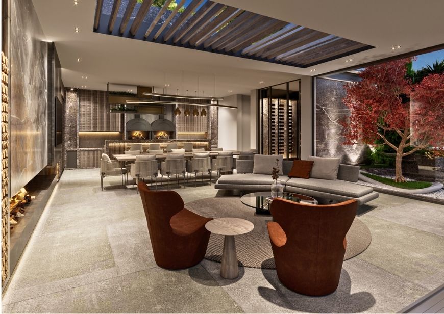 Palazzo Luxury Mansions redefines the pure relationship between contemporary architecture and nature. With its fluid spatial planning, refined material palette, and the